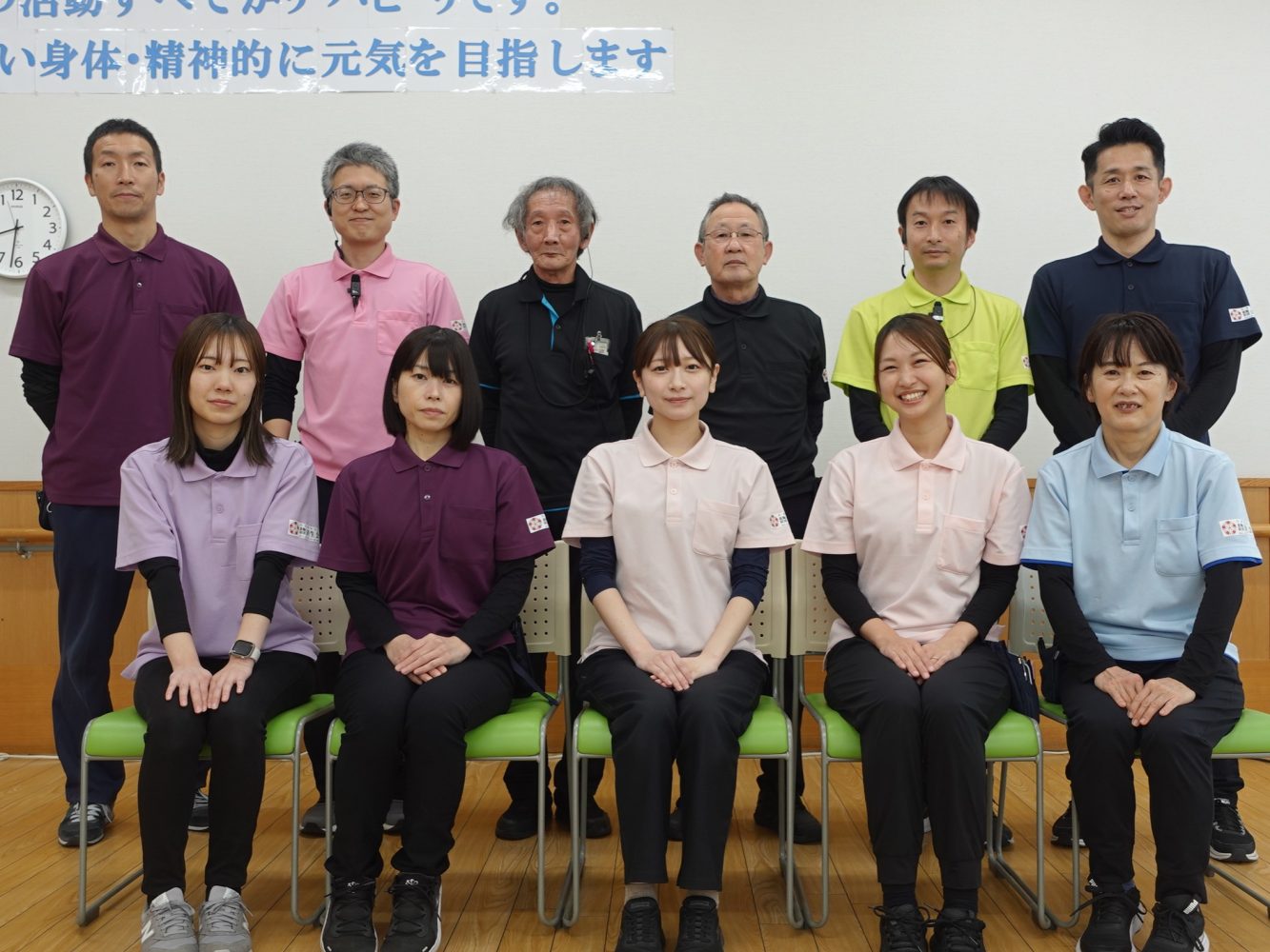 作業療法士、理学療法士、介護福祉士、看護師、管理栄養士等多職種で業務を行っています。利用者様が元気で健康になれるよう日々かかわらせていただいています。元気いっぱいのスタッフが利用者様の在宅生活の継続をサポートします。 -