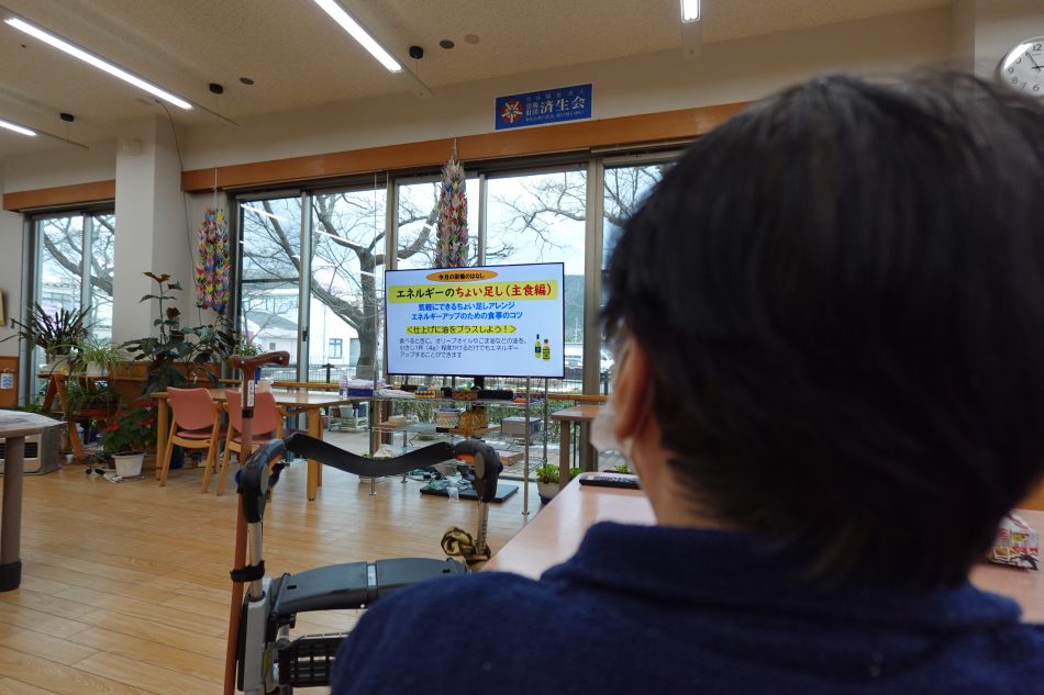 一覧はこちら 通所リハビリ 2026.01.28 食事の時間も、元気のひみつ。〜デイケア栄養士の取り組み〜 はまかぜのデイケアでは、栄養士が「栄養改善」をテーマにしたビデオを作成し、日々の食生活に役立てていただいています。 おすすめレシピの紹介は特に人気で、「資料をもらって帰るわ」と、うれしそうな利用者さんの笑顔😊も見られています。 また、体重に変化があった際には「ご飯は食べられているかな」「何か変わったことはないかな」と声をかけながら、体調の様子にも目を向けています。必要な情報はケアマネジャーとも共有し、元気に運動を続けていただけるよう、栄養の面からもそっと見守っています。 ←前の記事へ 次の記事へ→ はまかぜブログ