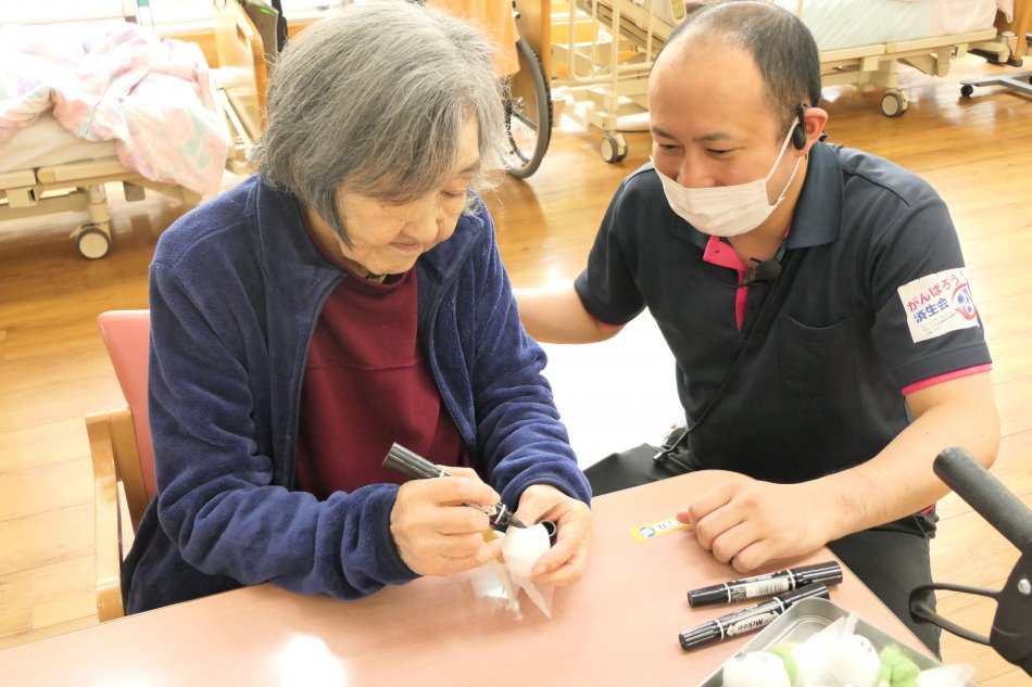 | 14:00 | リハビリ・レクリエーション 全身運動・頭の体操 手指運動・言葉のデイケア 趣味活動(小グループ)・各種レクリエーション |